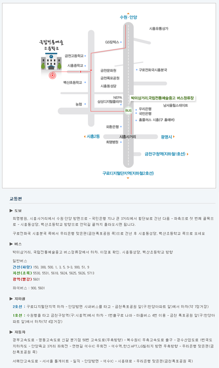 (08650) 서울특별시 금천구 시흥대로38길 62 국립전통예술중·고등학교내 인문관 012.